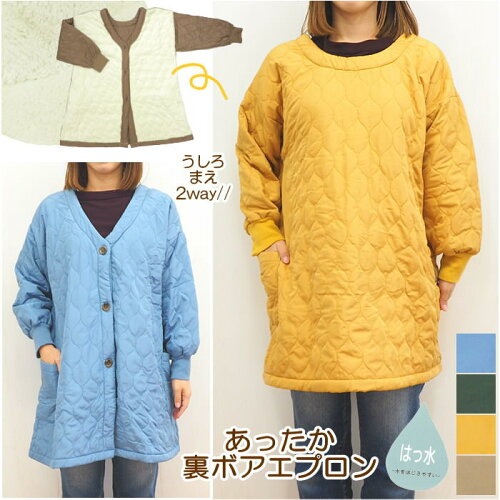 【即出荷】 エプロン 暖かい おしゃれ キルティング長袖エプロン 58-8022 裏起毛 あったか 保育士 裏フリース 大きいサイズ フリース 冬 防寒 レディース フリースエプロン 割烹着 スモック ワンピース 撥水加工 【ネコポス便不可】【送料無料】【あす楽対応】