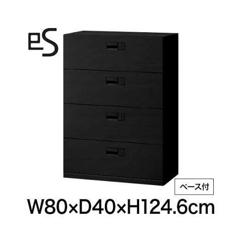 [24h限定【3%OFFクーポン】全品対象8/30火限り] オフィス収納 スチールキャビネット イトーキ エス 4段 引出し 型 下段用 スマートロック 幅80 奥行40 高さ124.6cm ベース付 ブラック 【自社便 開梱・設置付】 ITOKI es メーカー直販 メーカー保証 公式