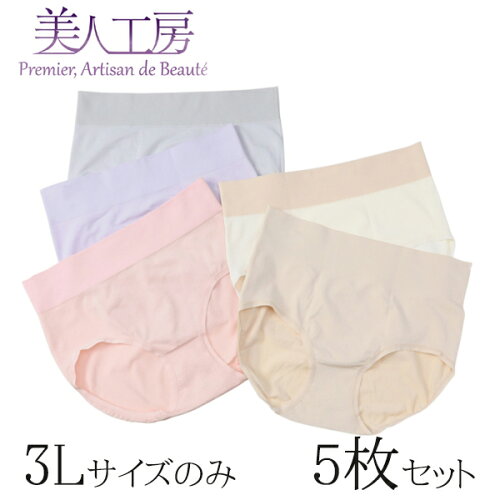 < 美人工房 > しなやかフィット 深ばきショーツ 5枚 セット ライトカラー ( 5点 5色 下着 ランジェリー レディース ショーツ パンツ パンティー ベージュ ピンク パープル グレー 大きいサイズ 着心地 深丈 お腹すっぽり 深め 女性用 深め ファッション まとめ買い )