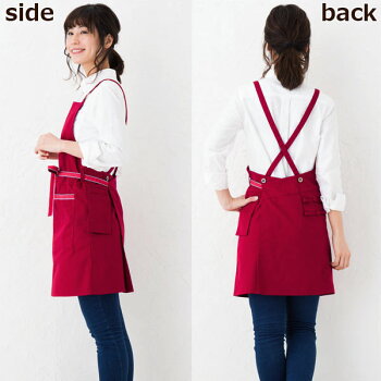 エプロン ショート ワーク 1270 かわいい おしゃれ 無地 赤 黒 ベージュ ポリエステル混 ノーアイロン ポケット メール便可