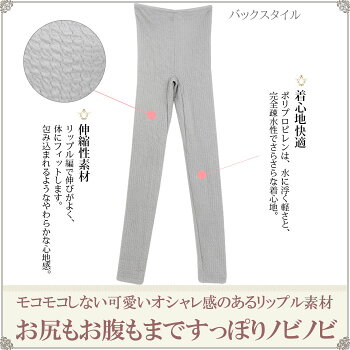 締め付けが苦手な女性におすすめ 可愛いリップル編みは肌触りがよく伸び縮み感があり、二重編み組織で空気をたくさん含む特性があり、保温性に優れています。