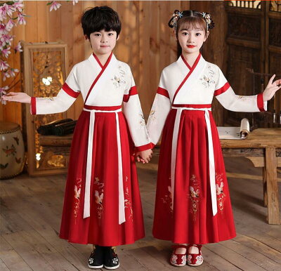 中華 舞台 ステージ衣裳 子供 キッズ 中華服 ユニセックス ジュニア 女の子 男の子 チャイナ服 漢服 唐装 中国風コスプレ衣装 学園祭 イベンド カンフーウェア 中国 古代 時代劇 コスチューム 仮装 変装 セットアップ お遊戯会 団体 お揃い 衣装 レッド ネイビー 110-180cm