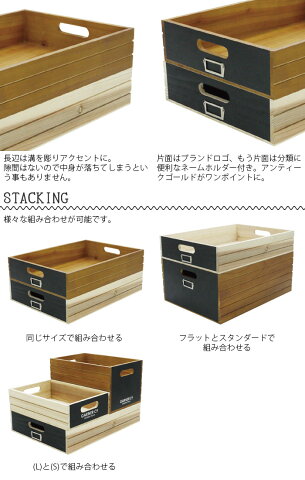 収納ボックス 木箱 箱 GARNER ウッドボックス 木製 フラット L ブラウン/ナチュラルA380 おしゃれ 積み重ね スタッキング 小物入れ アンティーク調 ヴィンテージ調 DIY インテリア ポテトボックス 収納