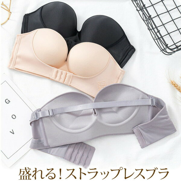 rainbou【麗in房】 ずれにくいのに盛れるストラップレスブラ フロントホックで谷間をメイク! ワイヤーレスで優しい着け心地♪