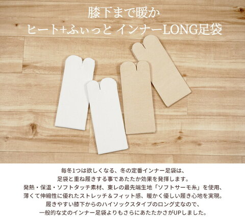 インナー足袋ストレッチ足袋 肌襦袢【200円OFFクーポン配布中】暖かい 足袋 冬 ヒート+ふぃっと long ロング インナー 足袋 成人式 選べる2色 ベージュ ホワイト M L サイズ ハイソックス 足袋 あったか 重ね履き【メール便 送料無料】