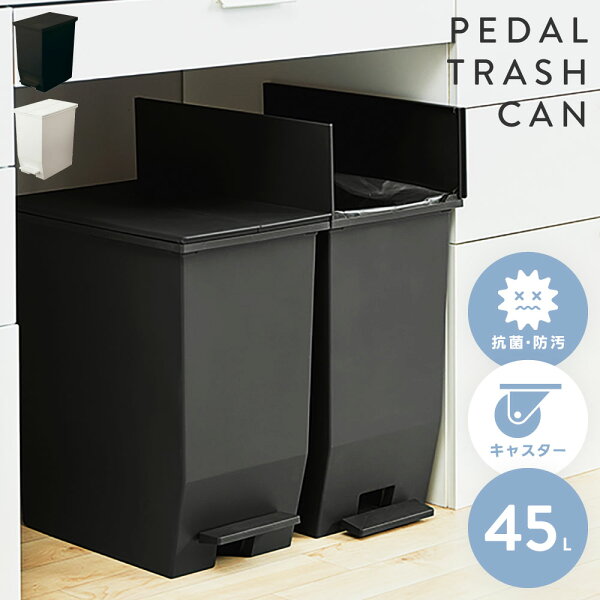 検索キーワード: ダストボックス 45L ゴミ箱 ふた付き ペダル付き 抗菌 防汚 リビング キッチン ホワイト/ブラック 棚下 片付け 模様替え 室内 手使わない ●ペダル式ダストボックスです。